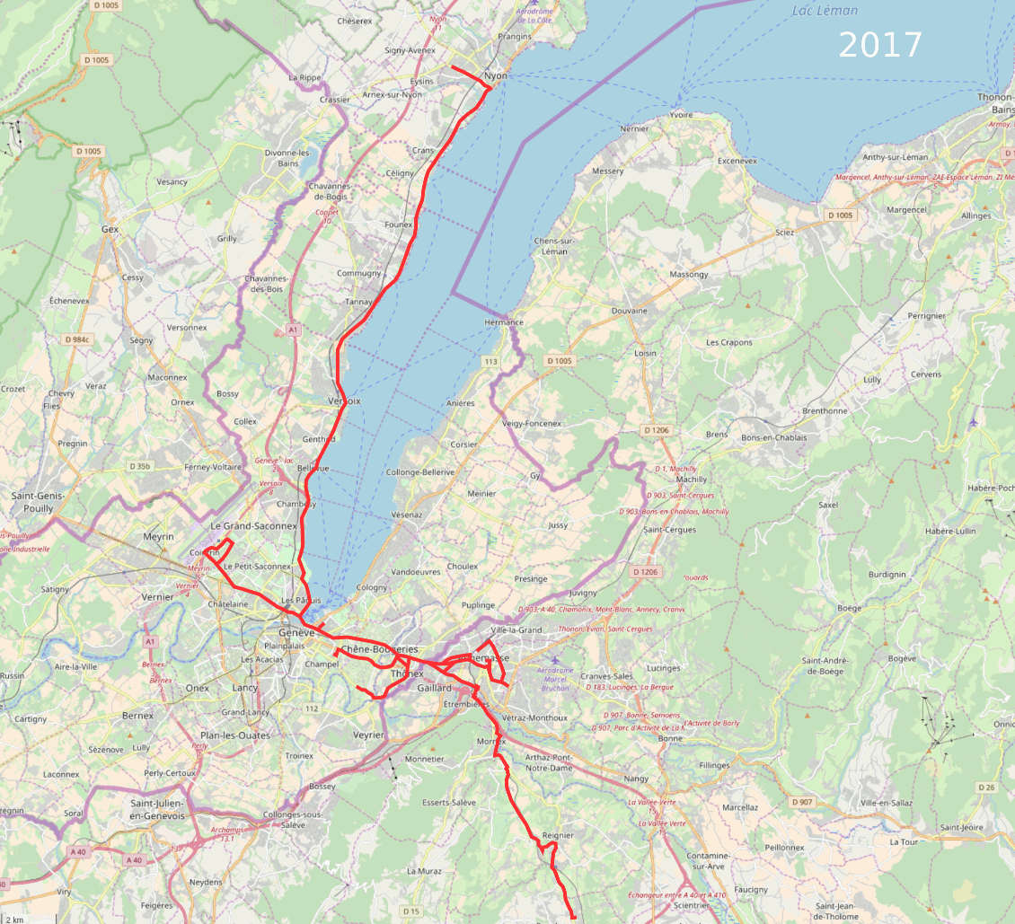 Tous mes trajets réguliers ou occasionels (en rouge)